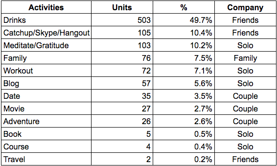 • 105 Catch ups, Hangouts, or Skypes with friends