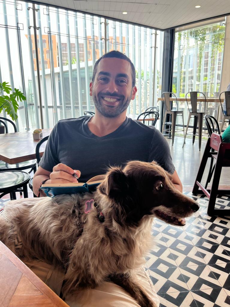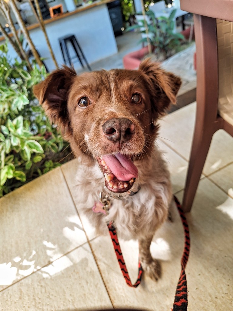 I loved our coffee dates. They were the best. We’d go to Cafe Unido and stay there for hours; me with a computer and you hopping over to each table to see if you could get some scraps from the customers. You would gently bark at a table if they hadn’t noticed you, acknowledge you, and then you’d go over to get your pets and a bite. You loved food; just like your Mama. You loved cheeseburgers, bark pops, and those dog friendly yogurts full of fruit from uncle Luis. You’d devour them in minutes and wouldn’t pull away. I miss looking over my plate to see you, hopeful by my side, patiently awaiting your serving of fries.